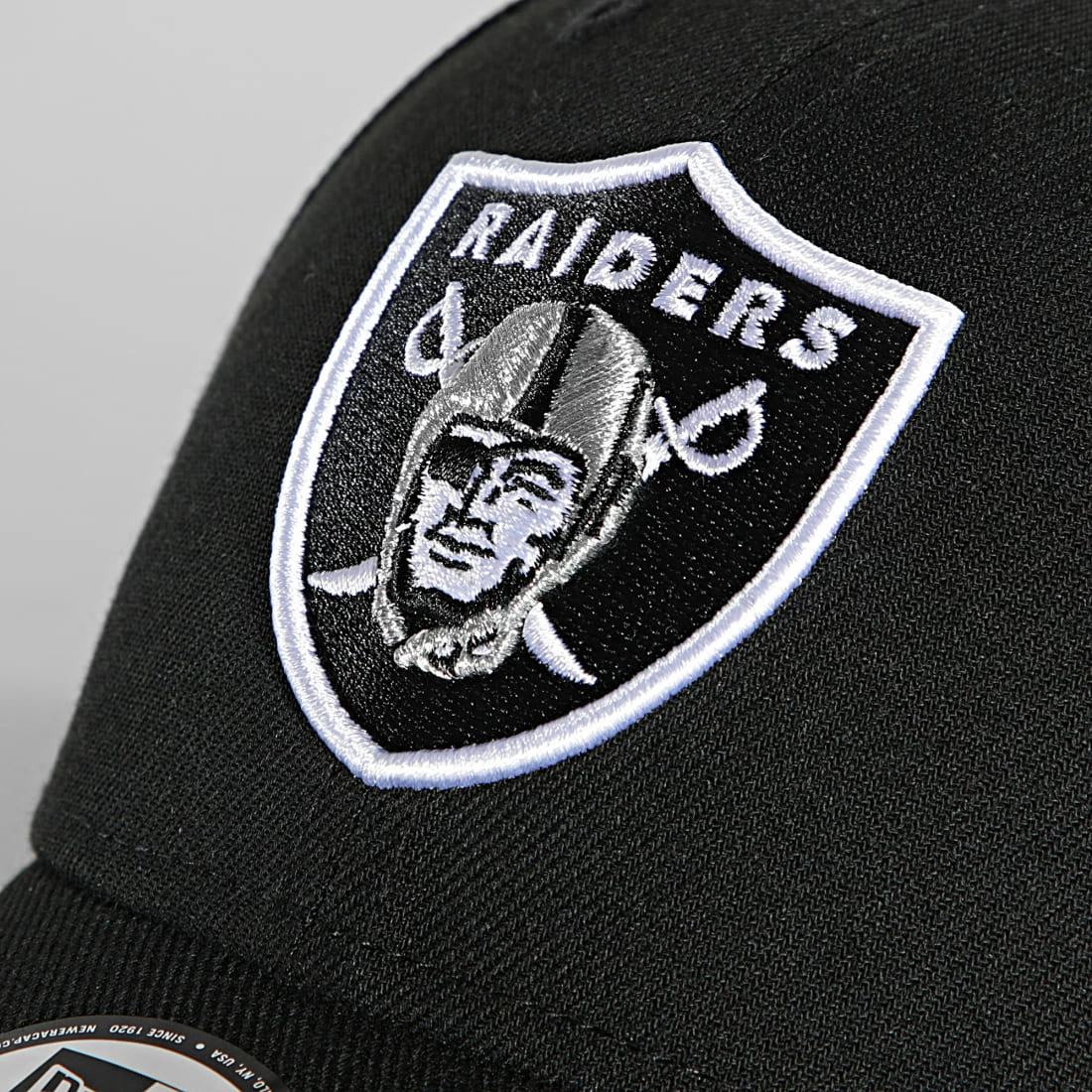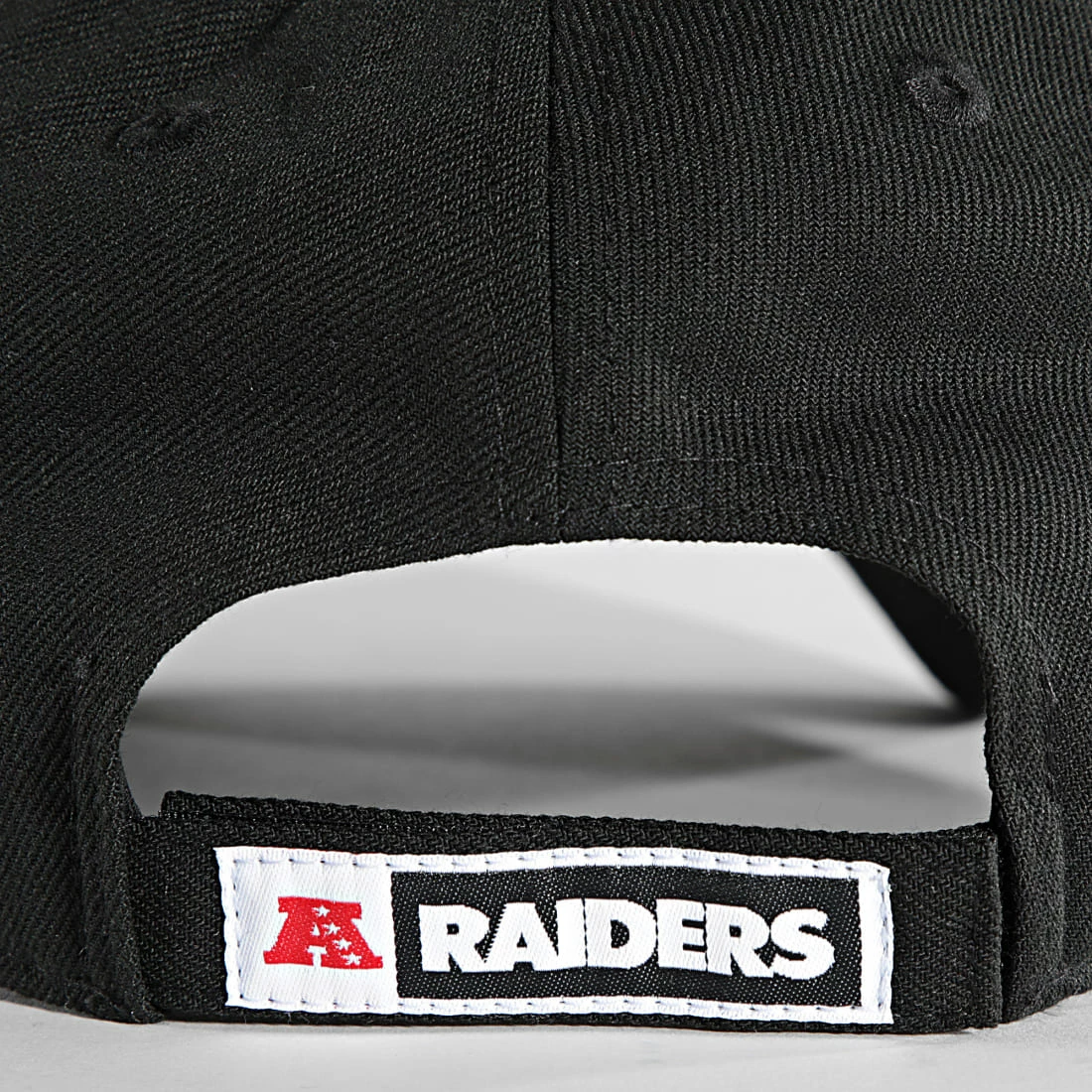 Taille unique, réglable à l’arrière par système strapback velcro avec broderie Raiders
